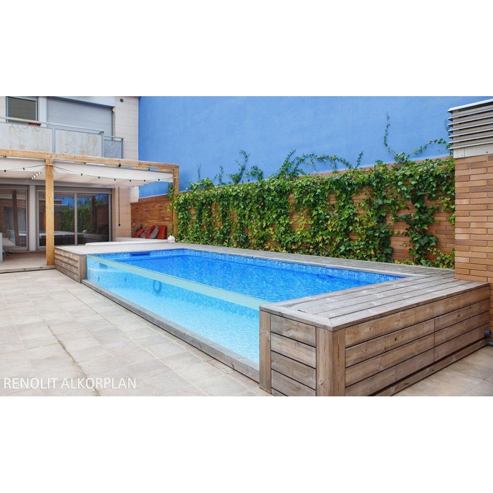 ALKORPLAN je vysoce pevná a tvárná bazénové fólie z měkčeného PVC s výztužnou vložkou z polyesterové tkaniny. Fólie je opatřena akrylátovou antibakteriální vrstvou, která chrání povrch před poškozením, starnutím, zvyšuje UV stabilitu fólie a zamezuje růstu bakterií.