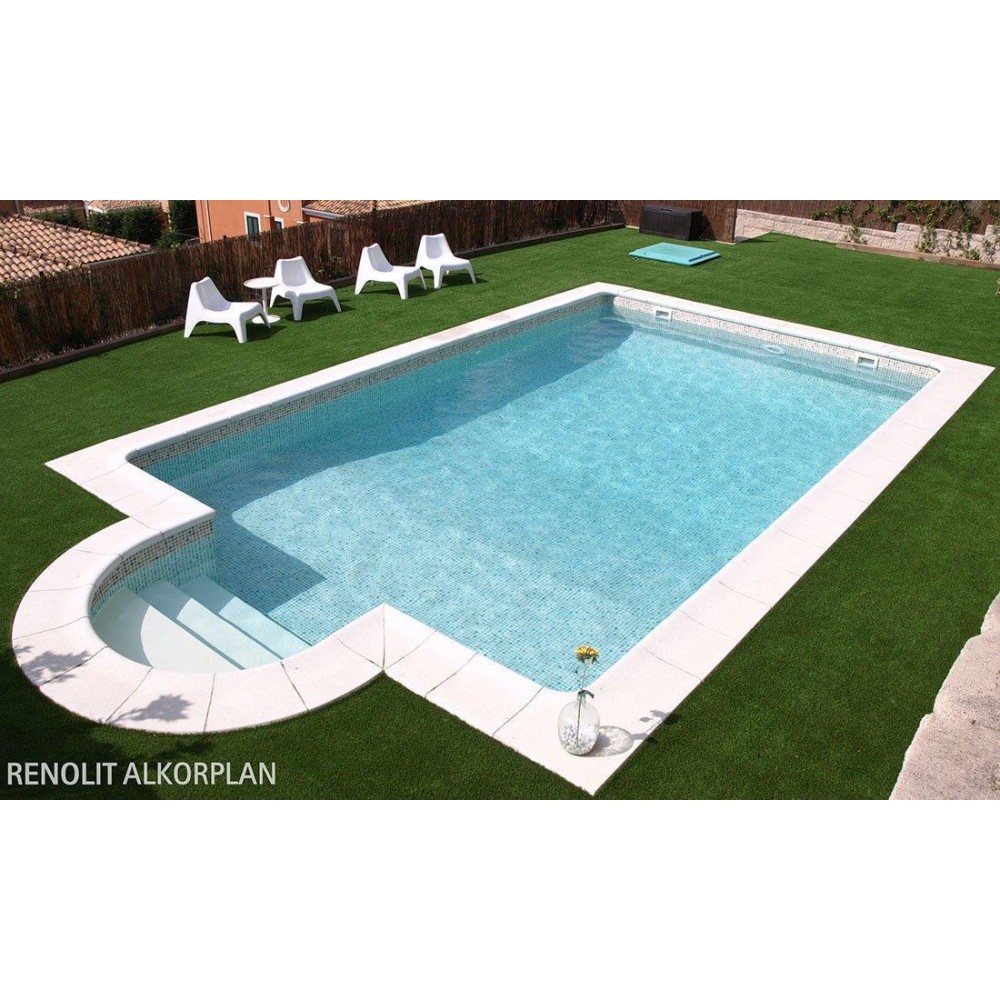 ALKORPLAN je vysoce pevná a tvárná bazénové fólie z měkčeného PVC s výztužnou vložkou z polyesterové tkaniny. Fólie je opatřena akrylátovou antibakteriální vrstvou, která chrání povrch před poškozením, starnutím, zvyšuje UV stabilitu fólie a zamezuje růstu bakterií.