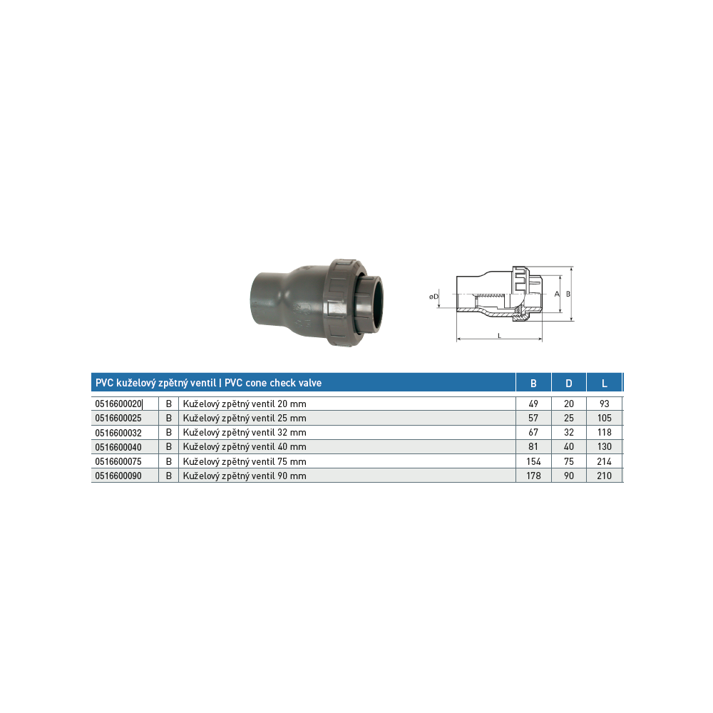 Kuželový zpětný ventil 20 mm se používá k trvalému zavodnění bazénových rozvodů i filtračních čerpadel.