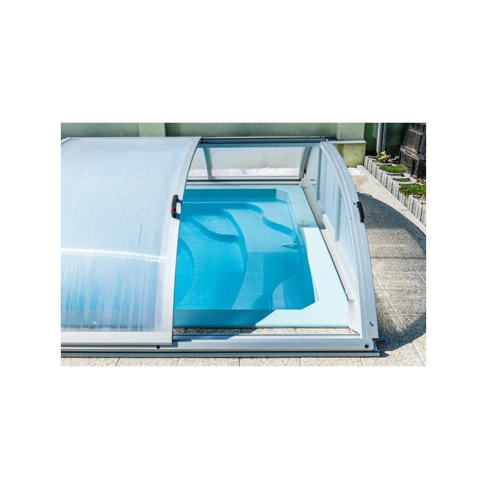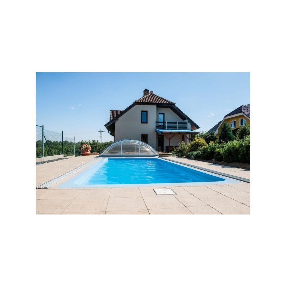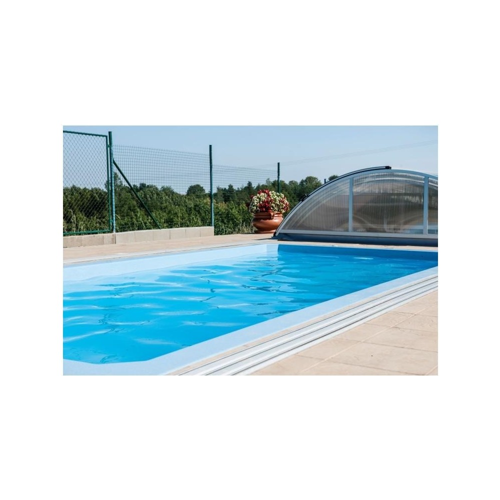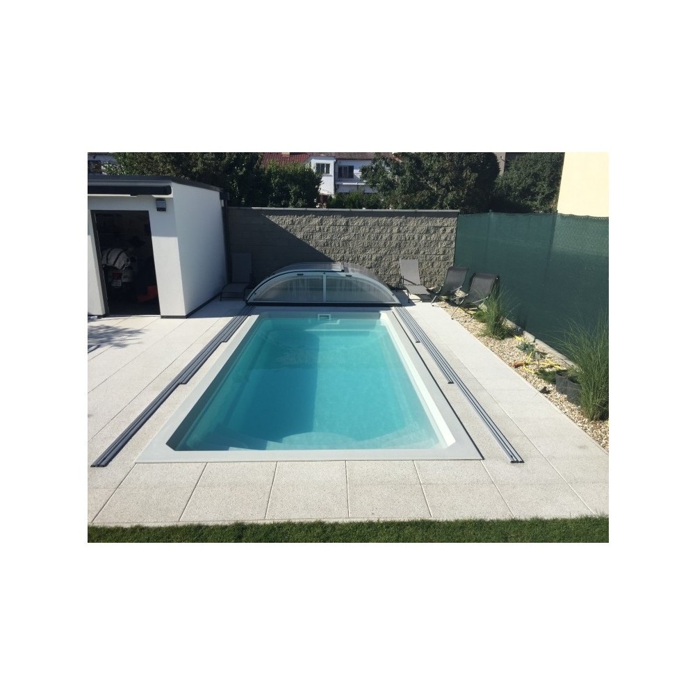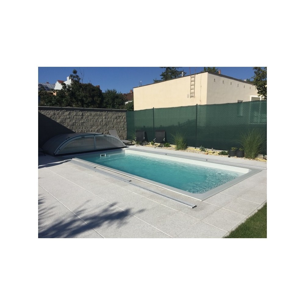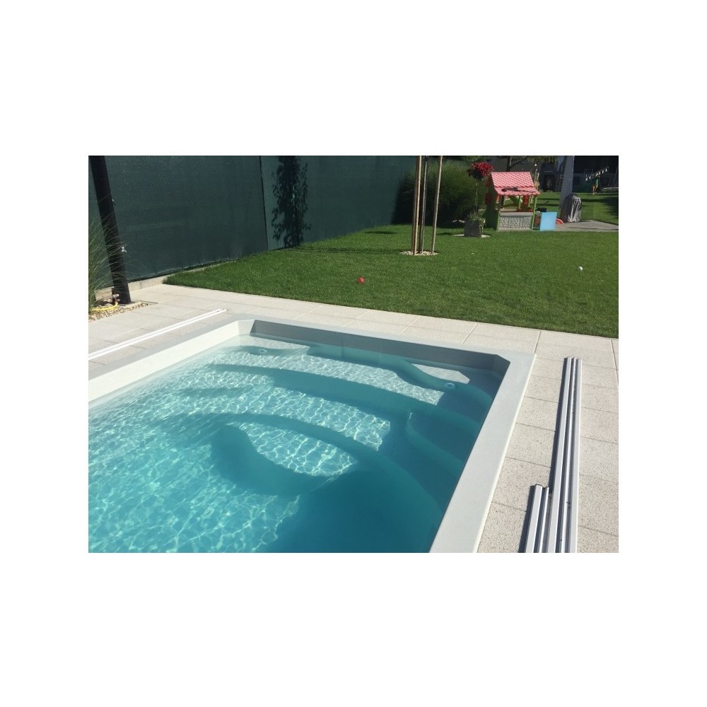 Obdélníkový bazén středních rozměrů s plnohodnotným integrovaným schodištěm, které nabízí pohodlný vstup do bazénu, prostor pro relaxaci, kde si můžete užívat příjemné perličkové lázně. Bazén je po celém obvodu vybaven širokým pochozím límcem, který výrazně usnadňuje a zlevňuje realizaci okolní povrchové úpravy.
