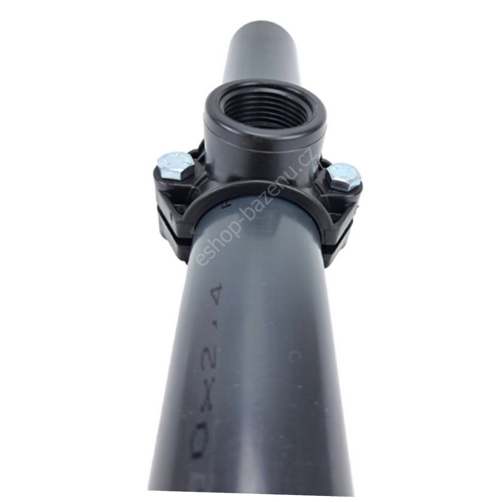 Navrtávací díl do potrubí o průměru 50 mm s vnitřním závitem 1" v šedočerné barvě. Závit slouží pro instalaci sond pro měření kvality vody, teplotních čidel, nástřikových ventilů a dalších příslušenství, které mají závit 1 ext.