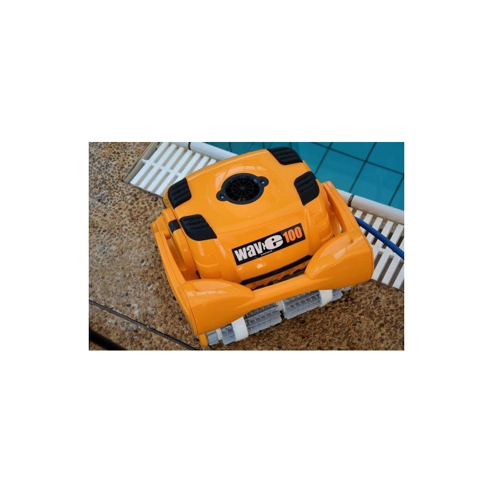 Robotický vysavač Dolphin WAVE 100 pro čištění nejen dna a stěn, ale i vodní linky veřejných bazénu a plováren do 25 m délky, s filtrační schopnosti 70 µm. Přefiltruje 18 m3/h vody.
