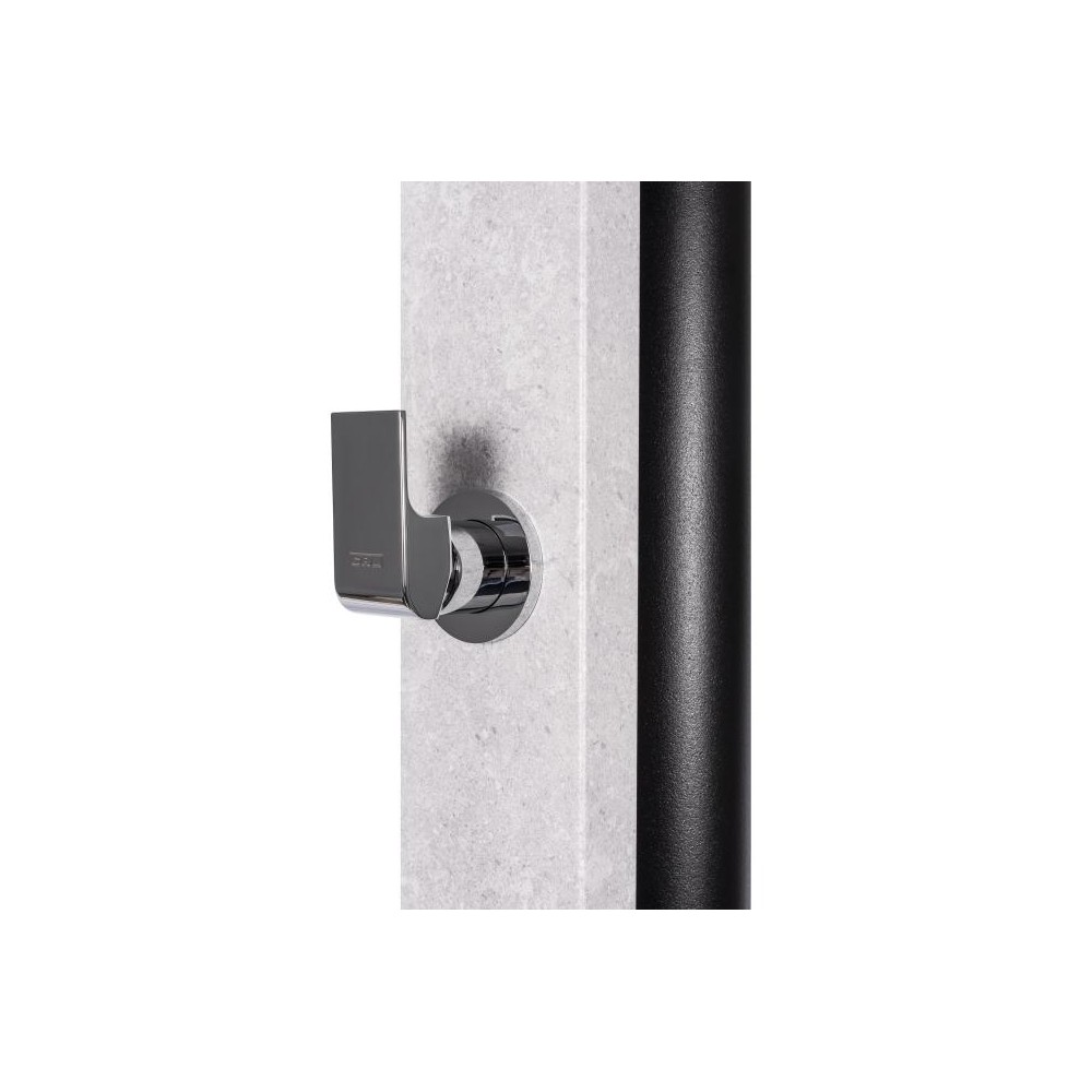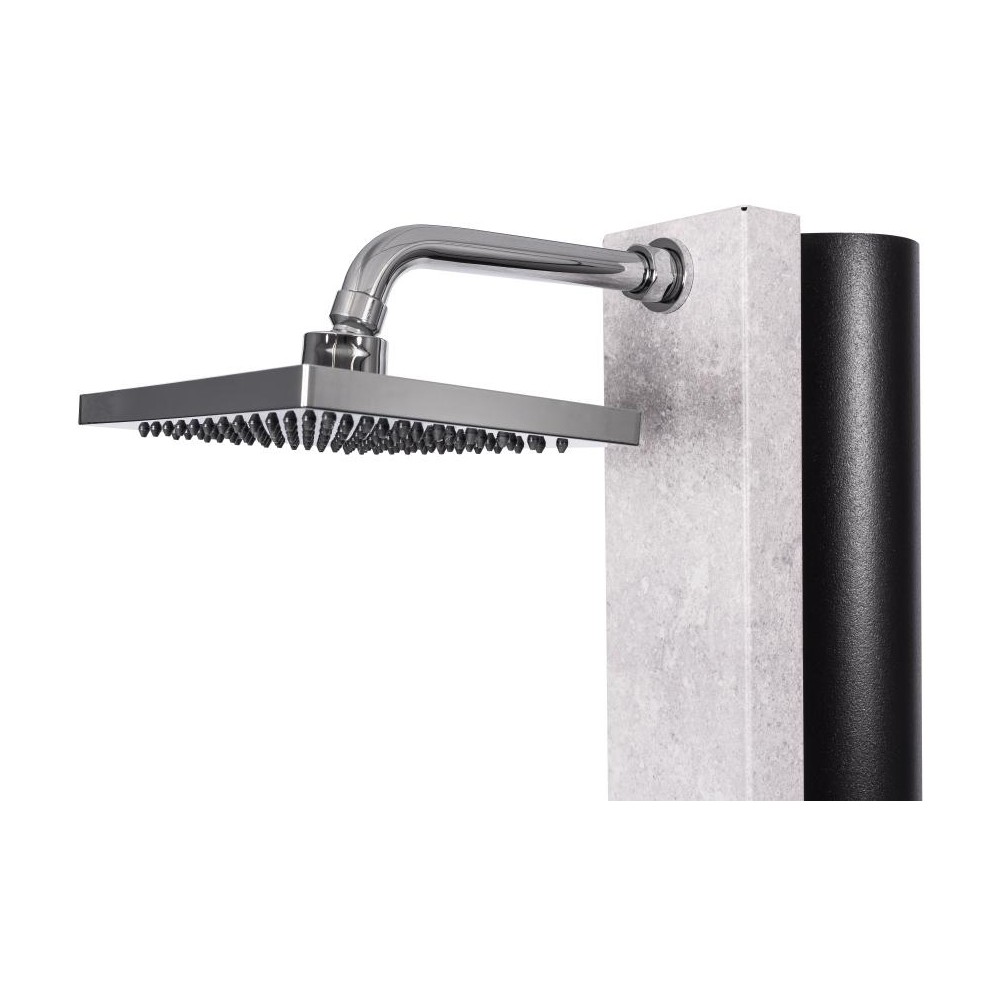 Solární sprcha o objemu 30 litrů. Tato sprcha má hliníkovou přední část s žulovou povrchovou úpravou a šířkou 112 mm. Součástí je páková baterie s obdélnikovým designem z chromované mosazi. Sprchová hlavice, která je na konci mosazného ramene (178 mm) má rozměr 220 x 150 mm. Přívod vody s vnitřním závitem 1/2". Tento modej je navíc vybaven baterií s kouhoutkem pro oplach nohou.