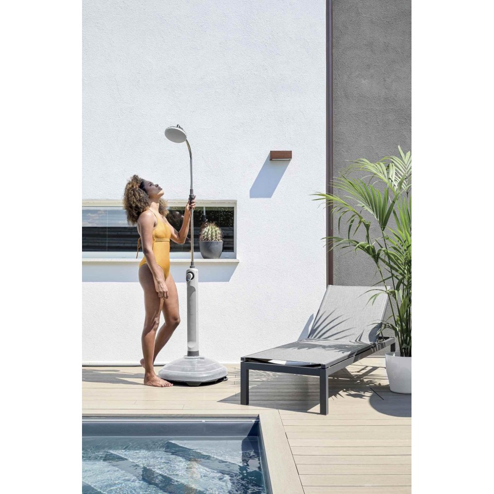 Solární sprcha ATLAS GARDEN ŽULA o objemu 30 litrů s hliníkovým čelem v granitové úpravě a šířkou 112 mm.