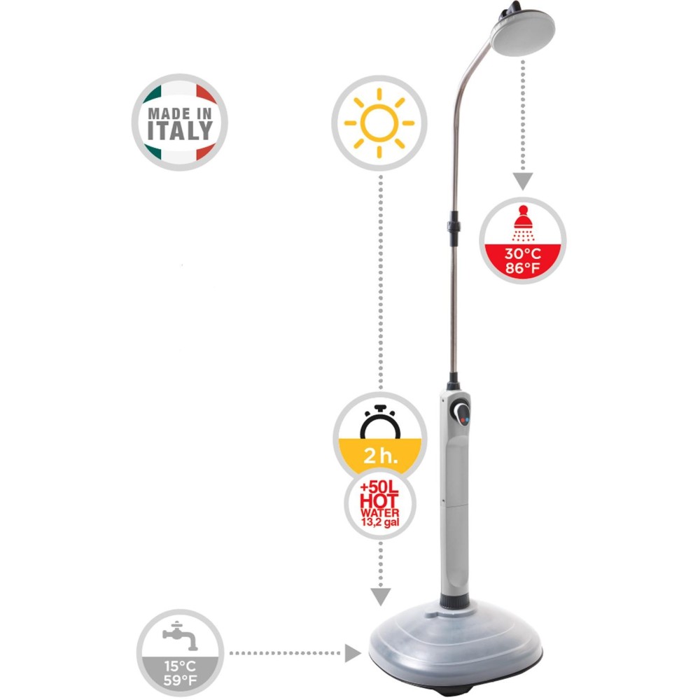 Solární sprcha Sunny NIAGARA využívá přirozené sluneční světlo k přirozené a bezplatné výrobě teplé vody. Při vystavení slunci po dobu asi dvou hodin může jednotka díky ohřevu vody v základně nádrže poskytnout několik horkých sprch o požadované teplotě díky vestavěnému ovládání směšovače.