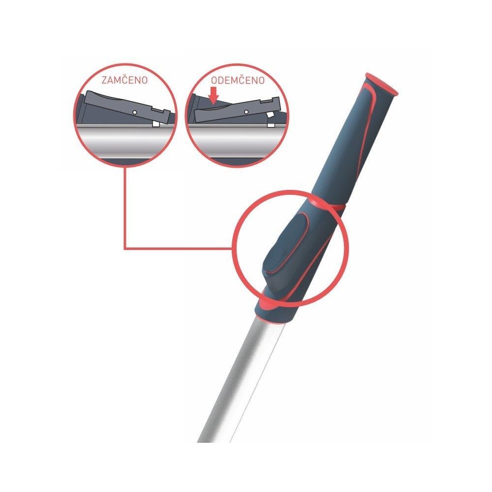 Teleskopická tyč je tvořena dvěma díly zasunutými do sebe, které se nastavují dle potřeby na délku 1,5 - 4,5 m