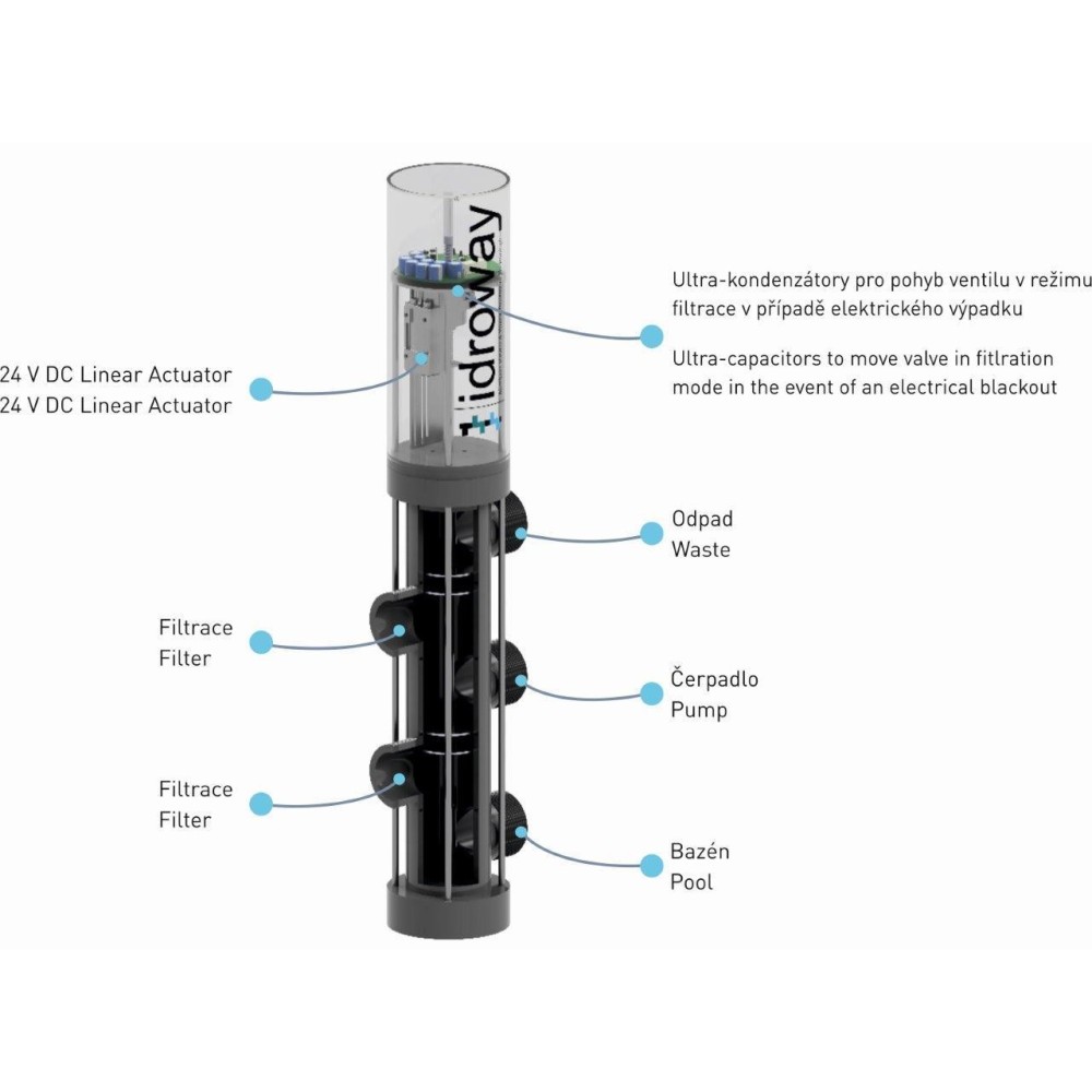 STARWAY je motorizovaný 5-cestný ventil pro automatické zpětné proplachování pískových filtrací.