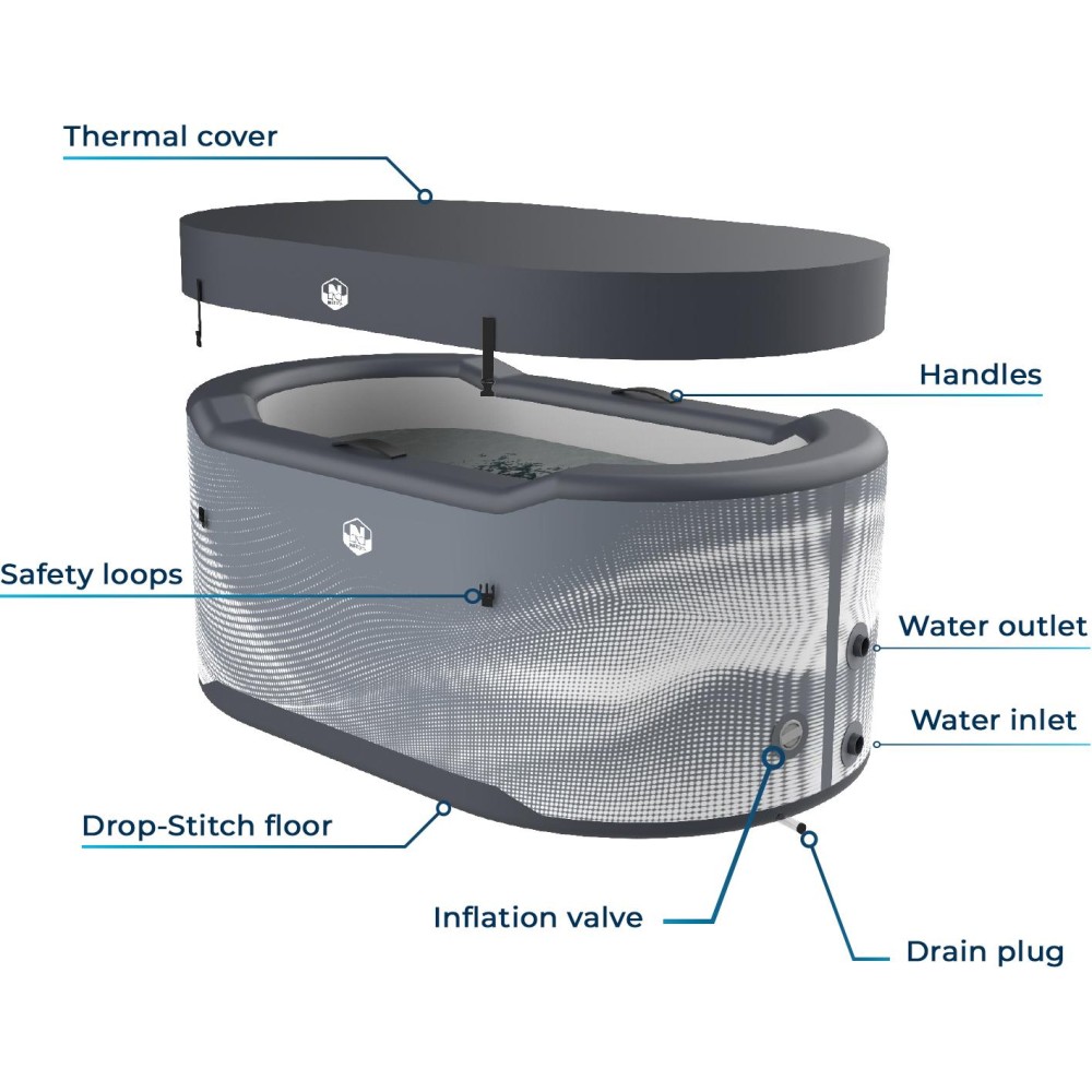 Järvi je nafukovací vana s drop-stitch technologií určená pro sportovce a fitness nadšence, kteří chtějí těžit z léčebných výhod ledových koupelí. Díky své struktuře je pevný a lehký. To umožňuje snadnou instalaci a zjednodušenou přepravu, ideální pro použití doma nebo venku. Díky vysokotlakému nafukovacímu systému je po nafouknutí extrémně stabilní a zaručuje vám optimální zážitek.